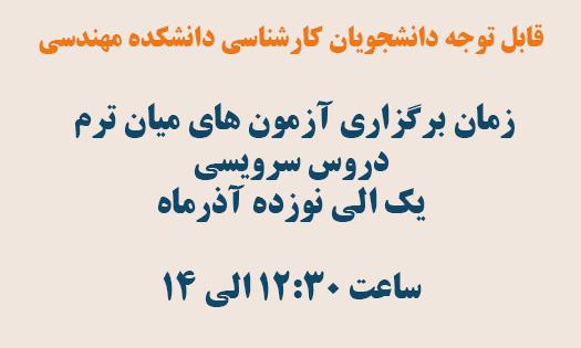 زمان برگزاری آزمون های میان ترم دروس سرویسی دانشکده مهندسی